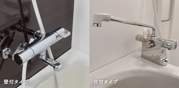 一方、台付水栓(デッキ型)は洗い場の平面や浴槽の縁に設置するため、取り回しやデザインの自由度が高いメリットがあります。好きな位置に設置できる半面、給水管・給湯管の配管ルートをしっかりと考慮しなければ水漏れやメンテナンス不良の原因になることも。専門の工具が必要になるケースもあるため、プロにまかせるか十分に知識と準備を整えてからDIYを行うとよいでしょう。