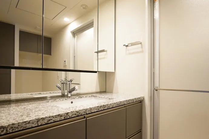 洗面台の鏡は水垢やホコリなどがつきやすいため、注意してください。毎日水拭きした後、乾拭きすることが綺麗に保つコツです。